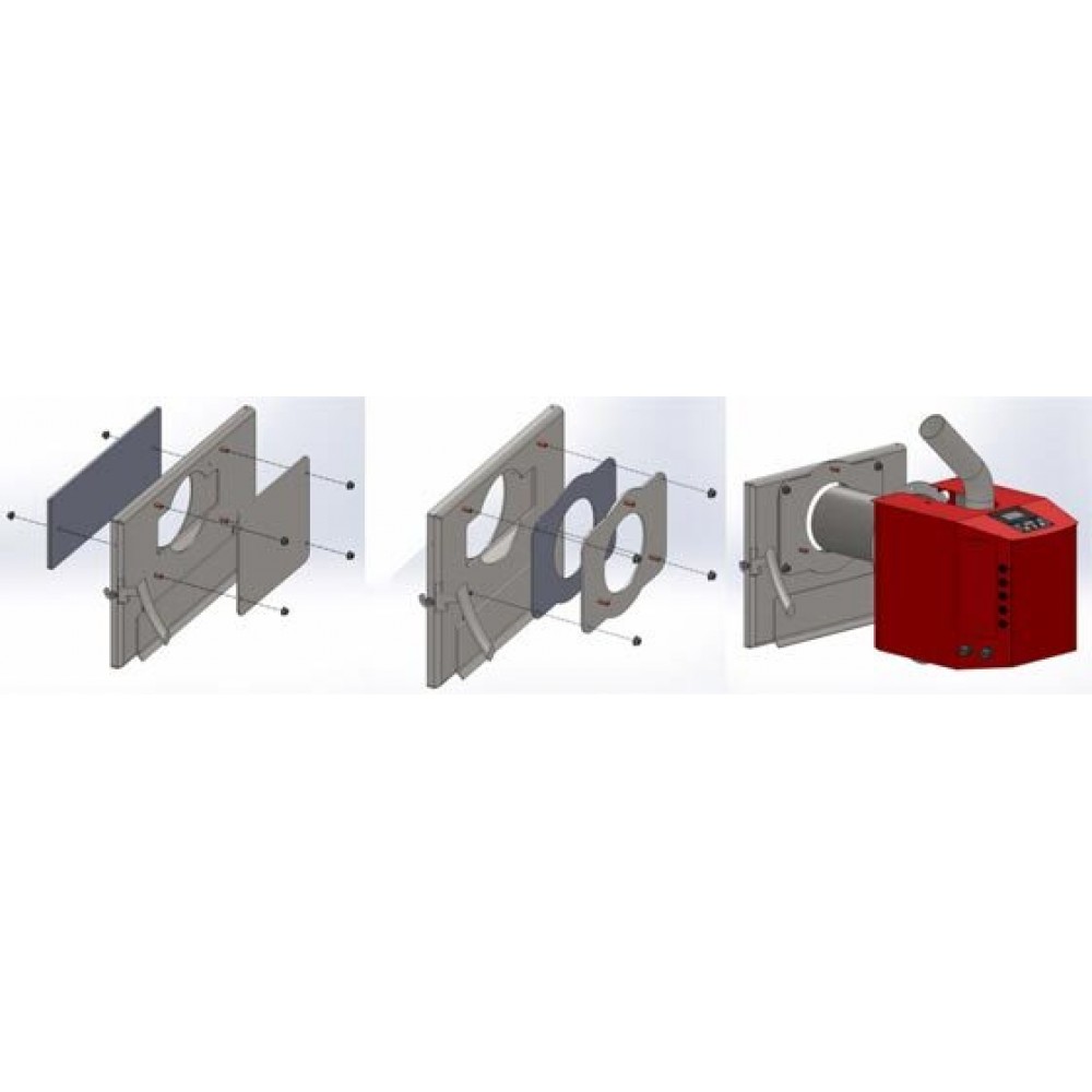 The kit allows quick and easy mounting of a BURNit Pell series burner to a wood boiler.